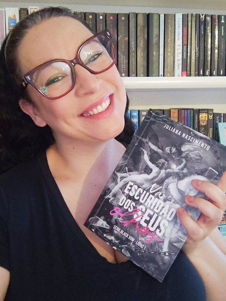 Por trás da loja literária Letturale, a Ju lançou recentemente o romance “Na escuridão dos seus olhos“, um dark romance com uma trama carregada de tensão emocional, que já está em seu 3º lote de venda e futuramente o segundo livro vem aí.