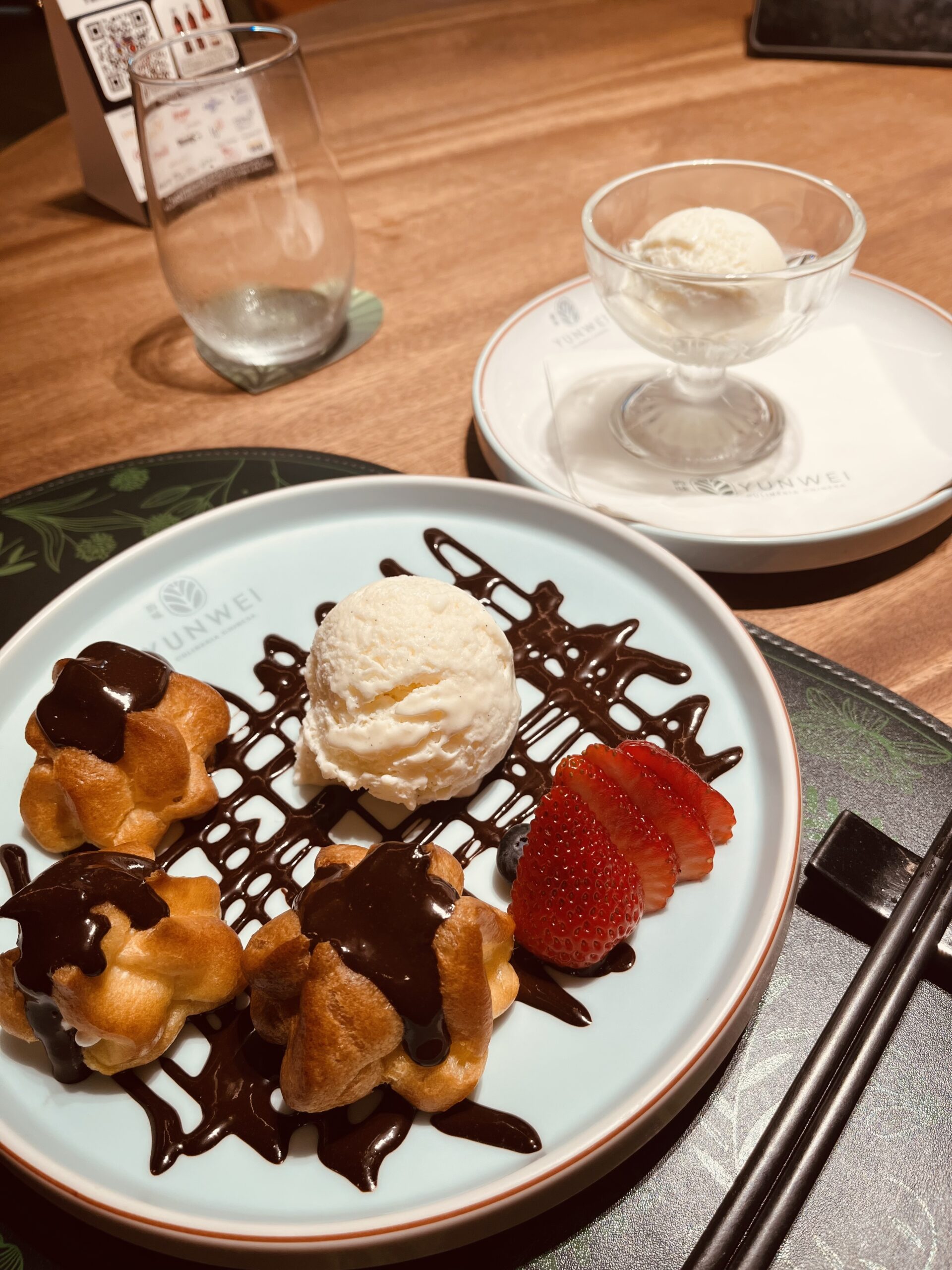 Por fim, pedimos a sobremesa! ♥ Nossa escolha: “Puffy“, uma massa recheada com chantilly, coberta por ganache de chocolate, com frutas vermelhas e sorvete. Sério, que sobremesa MARAVILHOSA! Lembra muito profiteroles, só que muito melhor. Foi a minha parte favorita, sem dúvida!